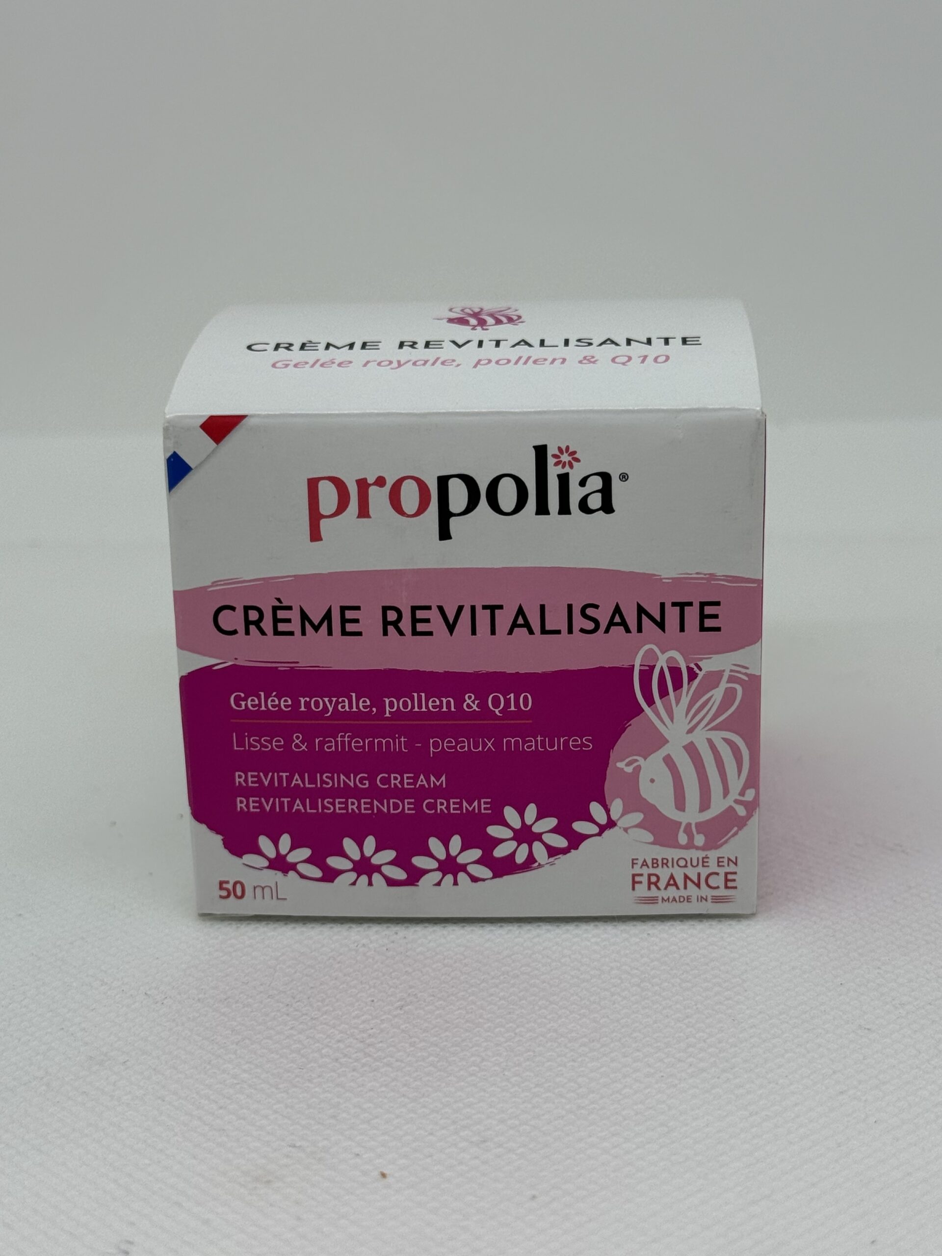 La crème revitalisante mobilise tout le savoir-faire français ainsi que tous les bienfaits des produits de la ruche au service de votre beauté. Elle convient parfaitement aux peaux sèches et fatiguées.